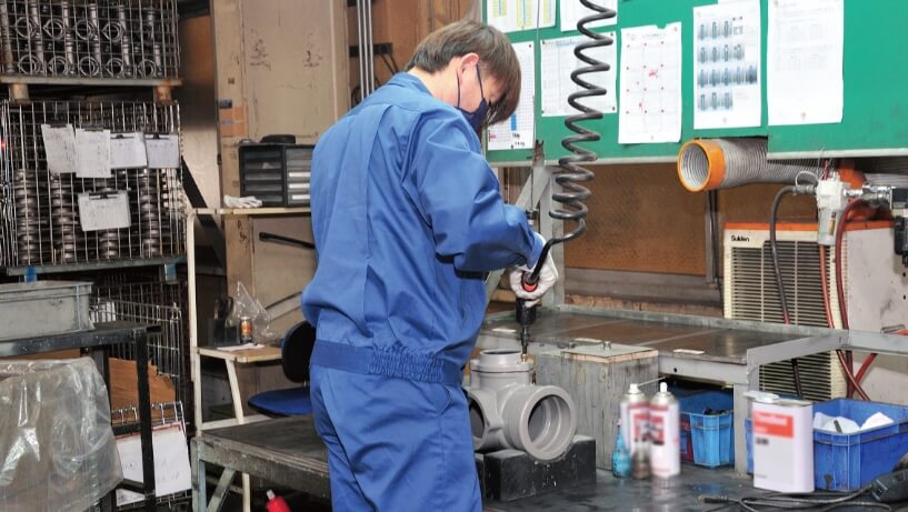 大手メーカーの単管式排水継手のOEM生産を一手に担い、顧客要求に応じた製品を組み立て全国に発送いたします。